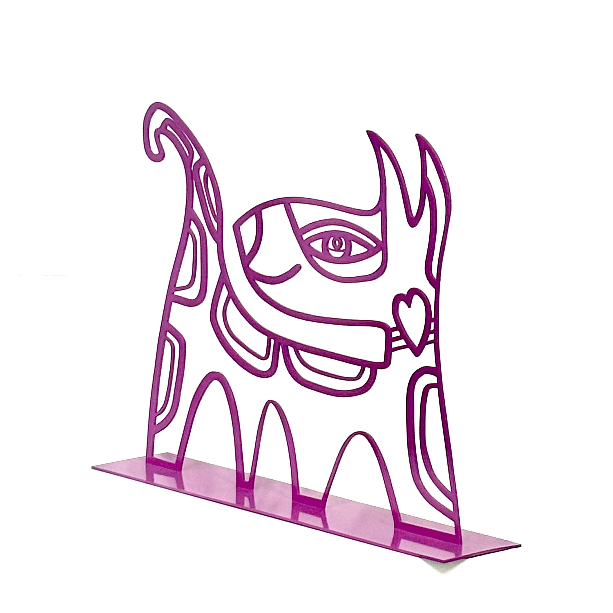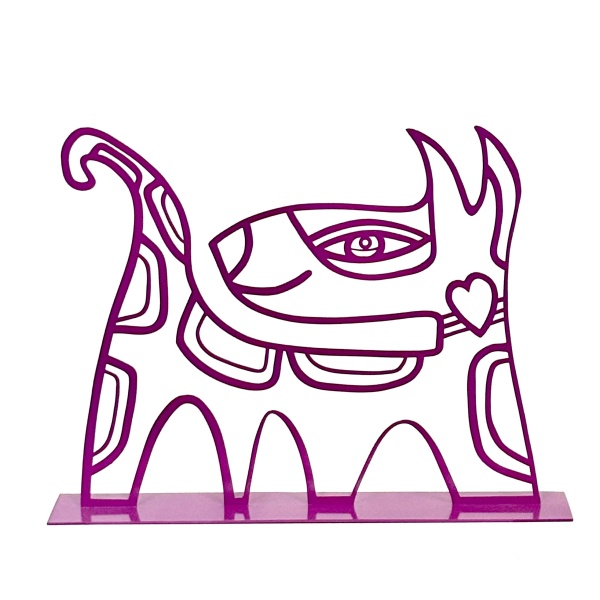 Sweet Dog, metal sculpture in magenta