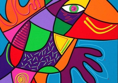 De schilderijen van Naerebout zijn het logboek van haar leven. Van heel druk in de vroege jaren, tot steeds rustiger in de latere jaren. Alle ervaringen die Naerebout opdoet in de diverse landen waar zij verblijft worden omgezet in dierbare herinneringen op doek. Als je er naar vraagt, weet ze bij ieder werk waar én wanneer ze het geschilderd heeft. Haar handschrift is ongewijzigd in de tijd en blijft altijd herkenbaar door het voor Naerebout specifieke krachtige kleurpallet . De kleuren worden opgebracht in acrylverf, een materiaal dat snel droogt, wat fijn is tijdens de vele reizen. Waar Naerebout is, is kleur!